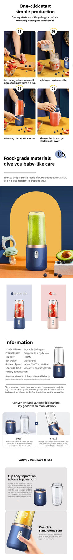 Function: Dish Washer Safe, USB Rechargeable, Eco-Friendly, Multifunctional, Smoothie