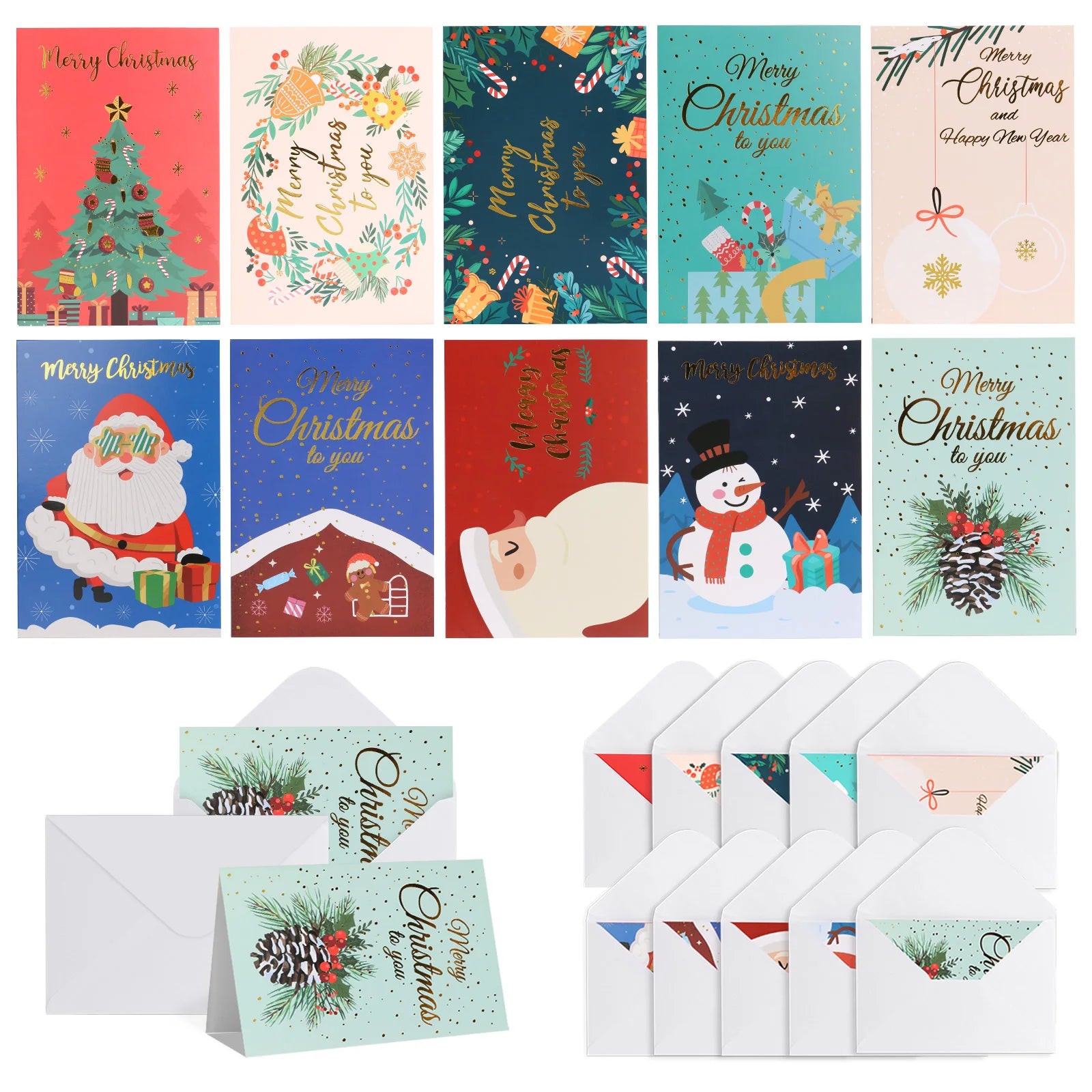 Diverse Christmas motifs: Classic Santa, Cute Snowman, Glittering Tree (as pictured), plus Reindeer, Gifts, and Winter Scenes - Perfect for personalizing messages to different recipients.