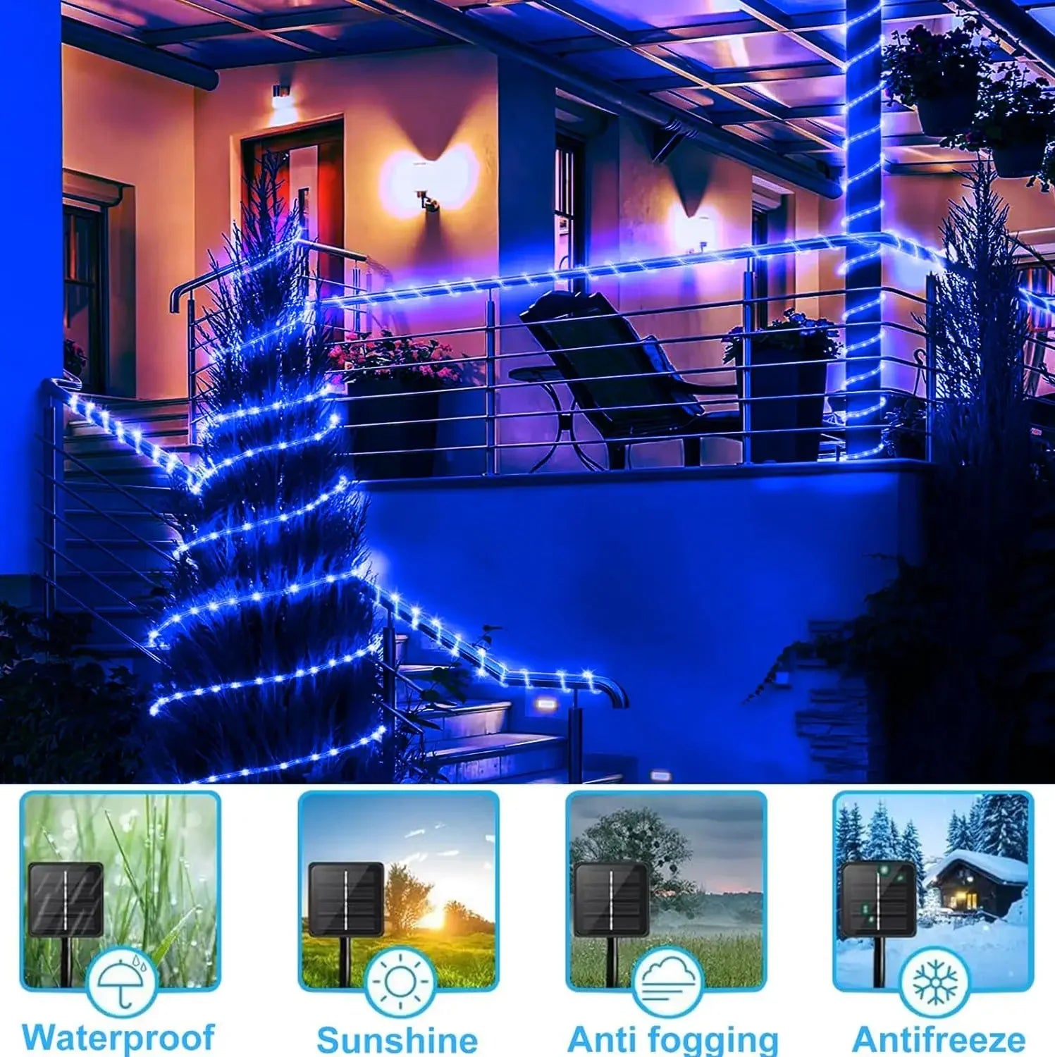 - 【MULTI-APPLICATION SCENARIOS】Solar tube light string is an excellent decoration for indoor and outdoor decoration, especially in festivals, weddings, parties and other scenes, you can use for garden, yard, patio, trees, curtains, decks, path etc, Creates a warm atmosphere.