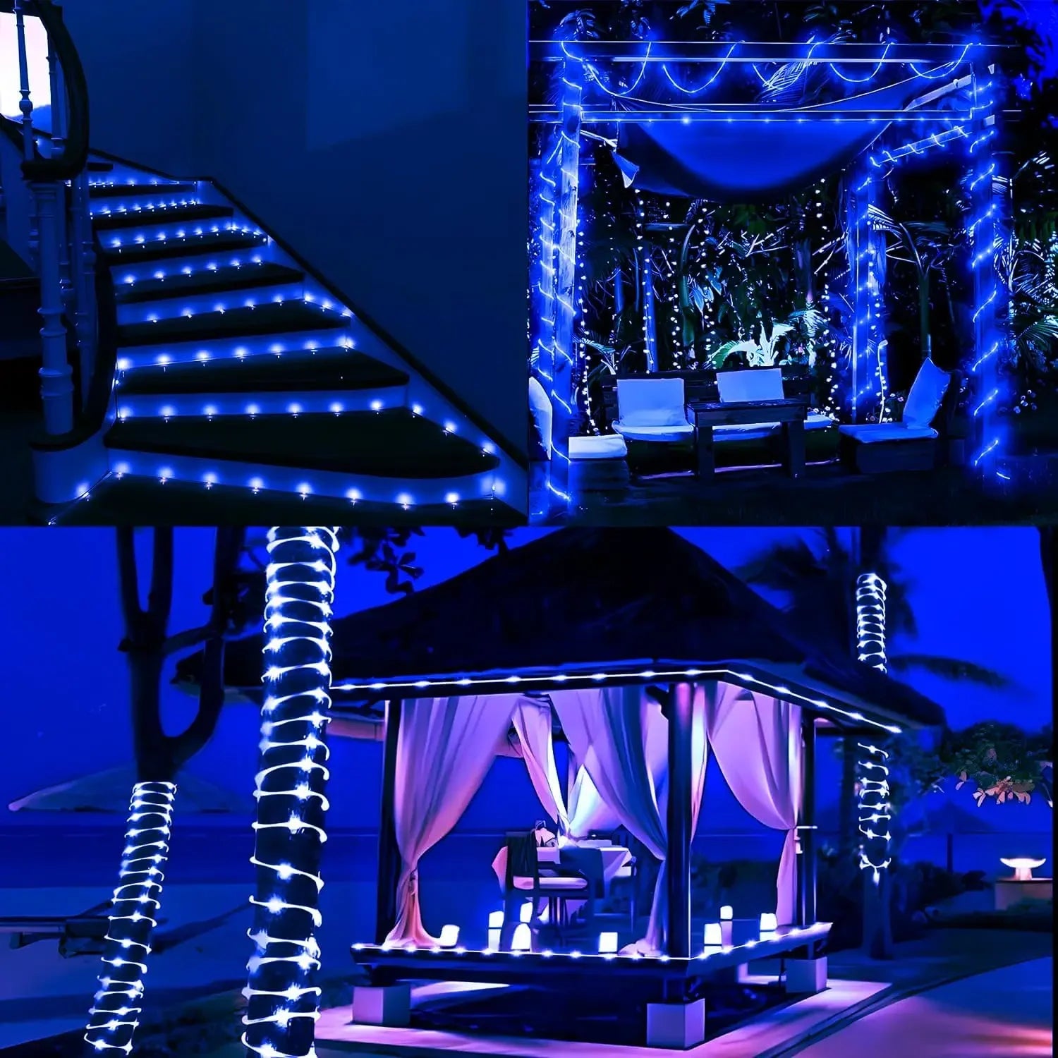 - 【SOLAR STRING LIGHTS MOLDABLE SHAPE】66 feet long silver wire outdoor tube light string, with 200 low-heat LED lights, energy saving and environmental protection; with steady 360 degree viewing angle they illuminate in every direction. The super flexible is easy to mold into any shape that you desire, rope light can be wrapped around trees, balconies, furniture, windows, stairs, etc.