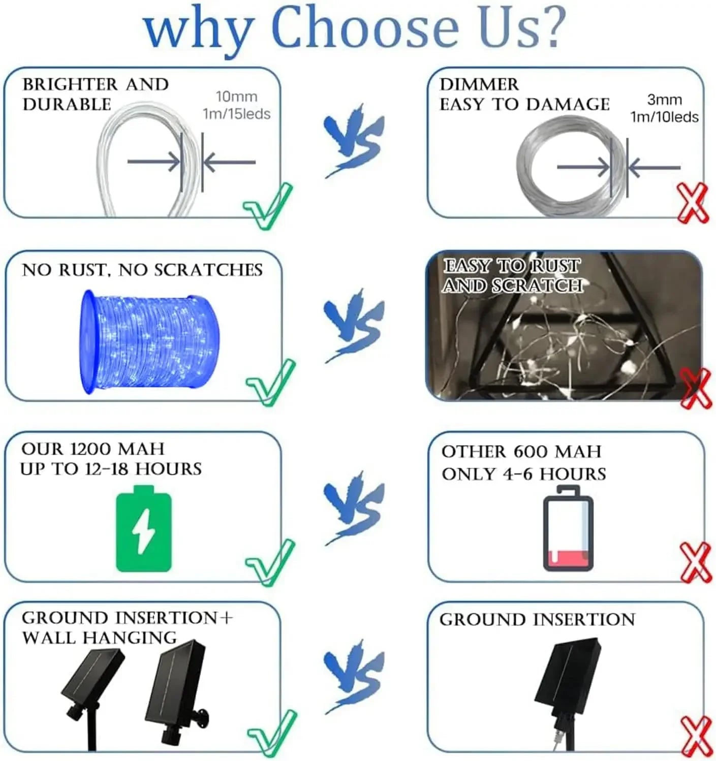 - 【IP65 WATERPROOF & PVC HOSE PROTECTION 】Outdoor decorative light strings and solar panels have IP65 waterproof rating, not afraid of rain and snow, so there is no need to worry about short circuit or unexpected power failure. The tube fairy light string is covered with PVC hose protective layer, which has better protection effect and can prolong the service life of the light string.