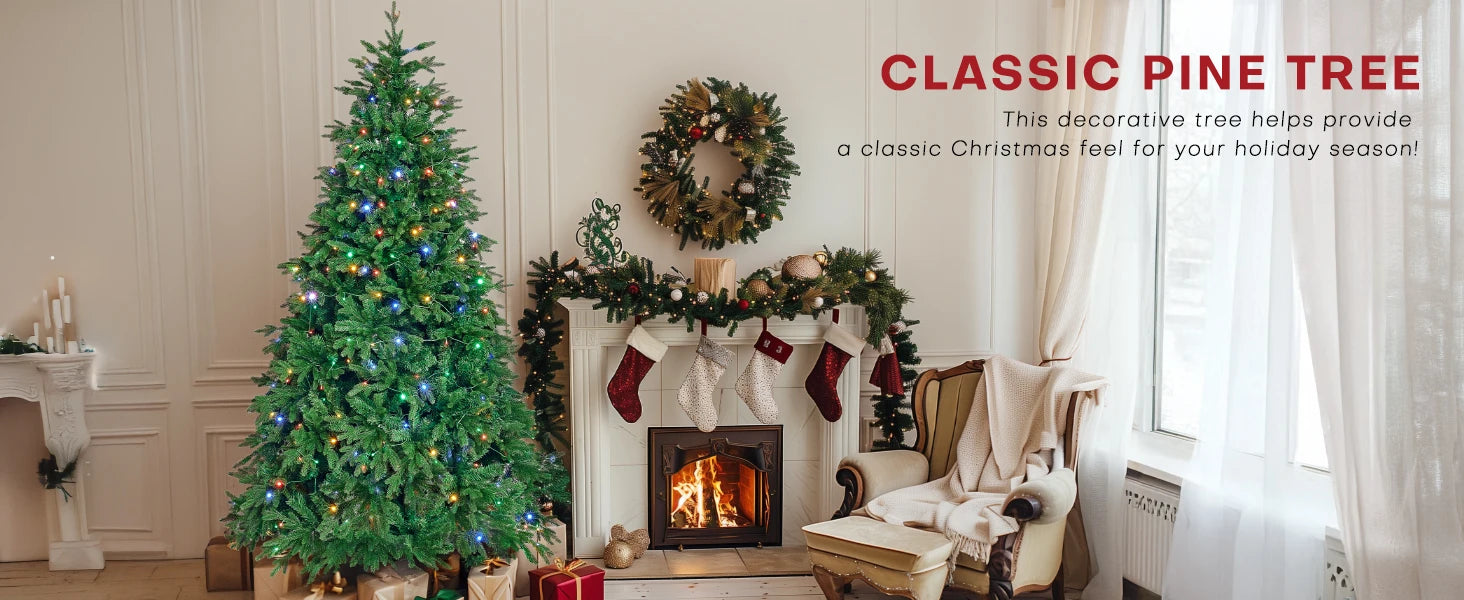 🎄Pre-lit: Our pre-lit Christmas tree has 550 pre-lit lights and is guaranteed to stay lit for over 3,000 hours. [Remote Control] 23 timer options +5 levels of brightness +8 different lighting modes create a warm, inviting glow that will make your holiday night sparkle. Remove the stress of hanging and undoing the lights every Christmas.